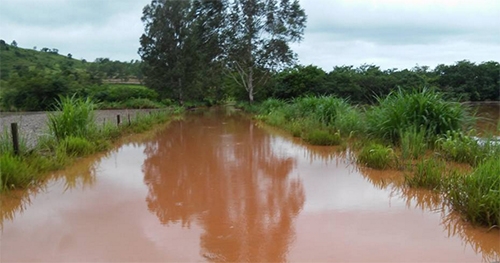 A foto foi postada no Facebook por Vannesa Brum Pinto. Trata-se de trecho da estrada que liga o distrito de Paraíso a sede Barbosa Ferraz. Depois das fortes chuvas dos últimos dias, a estrada ficou alagada e a comunidade ilhada.