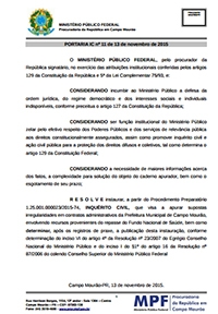 O inquérito civil foi instaurado pelo procurador da República Henrique Martins de Menezes.
