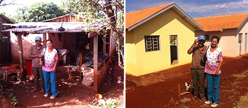 Foram entregues nesta sexta-feira as chaves das 40 casas do conjunto Delir da Silva Becher, em Roncador. As obras custaram R$ 1,2 milhões, bancadas pelo governo federal, em parceria com Cohapar e prefeitura. As moradias são para famílias de baixa renda e são de graça, sem prestação nenhuma. Olha aí a dona Geralda Aparecida Boavas, 54, mostrando a casa onde morava de favor e a residência nova.