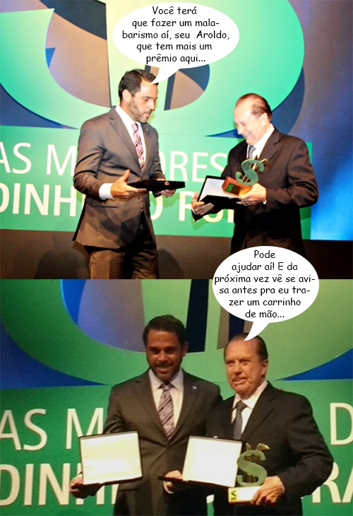 Os cliques são de São Paulo, onde o presidente da Editora Três, Caco Alguzaray, fez a entrega dos prêmios das “Melhores da Dinheiro Rural 2015” para o presidente da Coamo, Aroldo Gallasini. Anote aí: melhor cooperativa agrícola do Brasil, melhor gestão corporativa e melhor gestão financeira em cooperativas, além de empresa do ano no agronegócio brasileiro. Tá pensando o quê!...