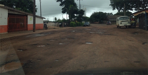 “Avenida principal do distrito de São Geraldo, em Araruna, que está idêntica a um queijo suíço e aguardando o asfalto há várias décadas”.