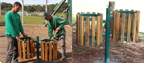 A prefeitura informou nesta sexta-feira que o Parque do Lago do lago recebeu 20 novas lixeiras de madeira. Também serão instaladas no calçadão central, Parque das Torres e na praça do jardim Santa Nilce. Foram adquiridas 350 lixeiras, sendo 50 de madeiras e 300 de ferro. O investimento foi de R$ 113,4 mil. As lixeiras de ferro serão instaladas nos novos pontos de ônibus e órgãos públicos. E cá pra nós: uma hora sai até banco pra o Parque do Lago, não sai?...