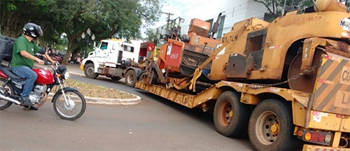 Carreta transportando máquinas pesadas passa pela av. Capitão Índio Bandeira, esquina com rua São Paulo, nesta segunda-feira à tarde. Foto: João Silvestrin