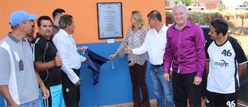 A prefeitura inaugurou neste sábado o vestiário do campo de futebol da Vila Cândida. A obra de 53,44 m2 custou R$ 74,9 mil. “Orgulhosamente entregamos este vestiário que, com certeza, é um grande beneficio para as pessoas que praticam esporte no local”, frisou a prefeita Regina Dubay. O vereador Jorge Pereira também participou. Portanto, ninguém precisa mais ir pro mato pra trocar de roupa...