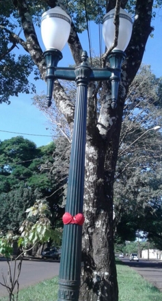 Olha só o que apareceu na av. Jorge Walter, nas proximidades do DER: um poste republicano de sutiã. Isso mesmo: colocaram um sutiã vermelho no poste. Será manifestação de apoio ao ex-presidente Lula?... Foto: Marli e Cássio Mello.