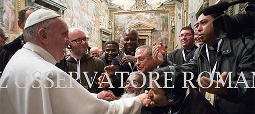 O padre Adilson Naruishi, da Catedral São José, esteve com o papa Francisco nesta terça-feira, em Roma. Foi durante a audiência dos missionários da misericórdia de todo o mundo. “Foi um momento de grande comoção”, escreveu o padre no Facebook. Foto: L"Osservatore Romano