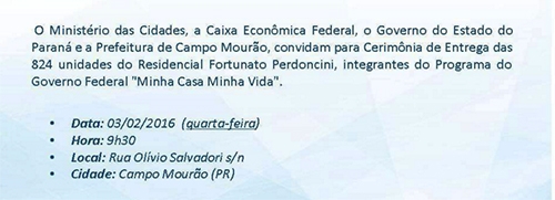 Vem para a inauguração do conjunto Fortunato Perdoncini.