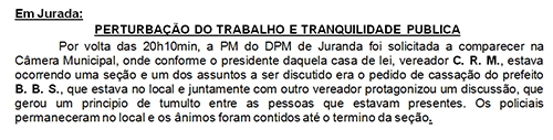 Batista foi acompanhar a a votação e discutiu com o vereador Claudemir Hernandes, o que gerou um tumulto.