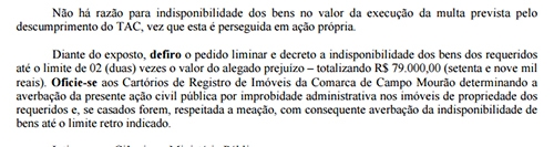 A juíza Gabriela Luciano Borri Aranda acatou, em partes, apenas o pedido de indisponibilidade dos bens.