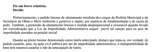 No despacho, a juíza diz que o pedido de afastamento não tem fundamentação e é “desproporcional e irrazoável” (veja acima).