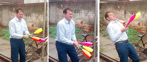 O secretário Edoel Rocha (Fiscalização) foi sexta-feira à inauguração das reforma do posto da Vila Cândida e não resistiu ao ver os malabaristas da Trupe Fundacam. Foi “fiscalizar” os malabáris. Ah, se a direção do Circo Thiany, que está em Maringá, ver isso, a prefeita Regina Dubay perde um secretário, hein?...