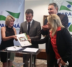 O governador Beto Richa e o presidente da Cohapar, Abelardo Lupion, assinaram nesta terça-feira, no Palácio Iguaçu, os contratos de prestação de serviço para a construção de 517 novas moradias populares em 11 municípios. Farol foi a única cidade da região incluída, com 27 unidades. Tudo em parceria com a Caixa Econômica Federal e prefeituras. A prefeita Angela Kraus participou e aproveitou para colocar em dia a conversa com o governador.