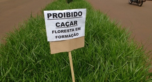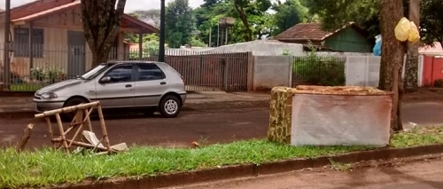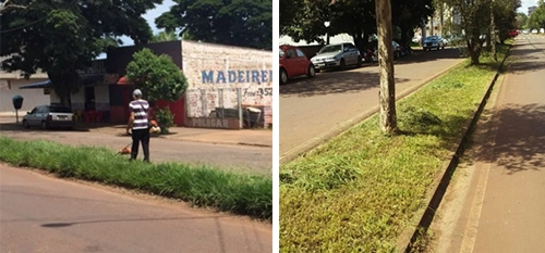 Empresários fizeram vaquinha e pagaram o corte de grama da av. Goioerê, entre as ruas Rocha Pombo e Panambi. Foi nesta terça-feira. A uma quadra dali, perto da rua São José, morador colocou placa informando que a floresta está em formação e é “proibido caçar”.