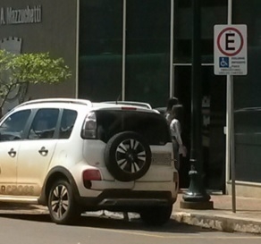 “Motorista, ainda jovem, andando perfeitamente, deixa carro em vaga de deficiente, em frente à Câmara de Vereadores, na rua Francisco Albuquerque. Para usar as vagas especiais é preciso se cadastrar na Diretran”.