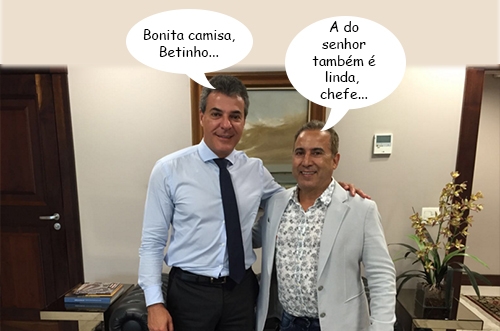 O prefeito de Goioerê, Beto Costa, foi a Curitiba acompanhar os projetos que estão sendo protocolados pelo município no governo estadual. Nesta terça-feira, a conversa incluiu o governador Beto Richa. Aí a camisa estilosa do prefeito fez a gente lembrar o velho comercial da US Top. “Bonita camisa, Fernandinho”, dizia o personagem, em 1984.
