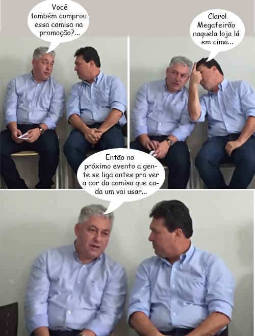 Os cliques são de quinta-feira, quando o secretário de Estado Douglas Fabrício (PPS) e o deputado Márcio Nunes (PSC, ainda) ficaram lado a lado na Santa Casa de Campo Mourão. Lado a lado e com camisas iguaizinhas mesmo, inclusive na marca. Detalhe: Marca Lacoste, cuja logo é um jacaré. Jacaré é 15. E 15 é PMDB. E PMDB que apoia o governador Beto Richa o Requião expulsa, hein?...