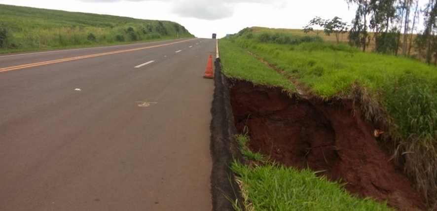 Tem trecho da rodovia que a erosão destruiu o acostamento.