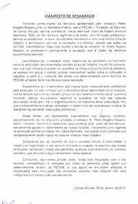 Cerca de 30 técnicos esportivos assinaram nesta quinta-feira uma nota de repúdio ao vereador Pedrinho Nespolo.
