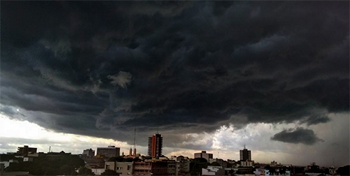 Vista de Campo Mourão, à 17h08 desta segunda-feira. Logo em seguida começou a chuva. Segundo o Simepar vai chover durante toda a semana na cidade. Serão pancadas de chuvas isoladas à tarde e à noite. Também com algumas trovoadas.