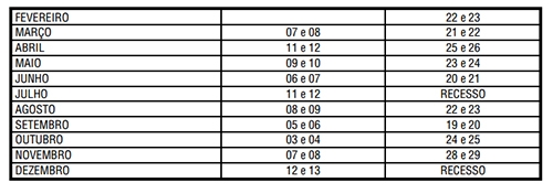 O calendário de sessões para o ano foi publicado nesta segunda-feira.