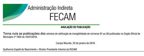 A Fundação de Esportes de Campo Mourão anulou a publicação de extratos da contratação de 35 técnicos.