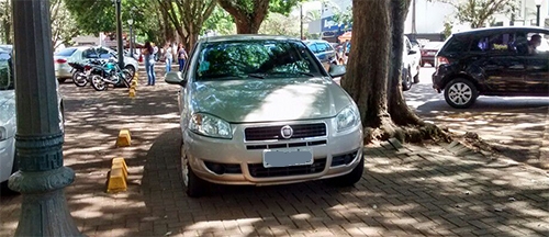 “Foto feita no último sábado, às 11h40, na praça São José, ao lado do estacionamento igreja. O carro parouo sobre a calçada. E o pedestre, cadeirante, mãe com carrinho de bebê, passam onde?”