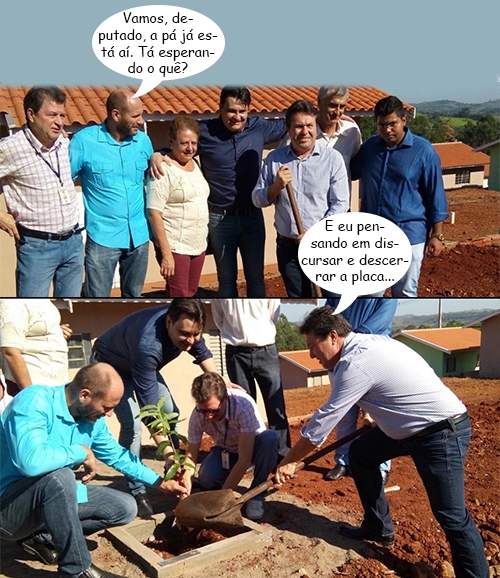 Os cliques são desta quinta-feira, em Barbosa Ferraz, onde aconteceu a entrega de 40 casas populares (Minha casa, minha vida). O deputado Márcio Nunes esteve por lá e ficou com a missão de plantar uma das árvores. Ah, pensa que é fácil...