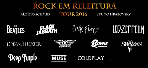 “Rock em releitura”. Esse o nome do show que o pianista Bruno Hrabovsky e o violinista Aloísio Schmid apresentam nesta sexta-feira (20h) no Teatro Municipal de Campo Mourão. Com piano e violino, ele interpretarão música dos Beatles, Led Zeppelin e Pink Floyd, entre outros grupos de rock. Ingressos a R$ 30 (R$ 15 a meia).