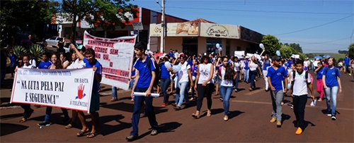 Professores e alunos do colégio estadual João Farias da Costa, de Nova Cantu, realizaram nesta sexta-feira a 1ª Marcha pela paz e segurança. Eles saíram da escola em passeata até a praça da matriz, onde houve uma manifestação com adesão de outros segmentos.