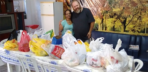 Lembra que o ingresso para o show do Paulinho Mixaria poderia cair de R$ 60 para R$ 50 caso se levasse 1 kg de alimento no Teatro Municipal? Pois fique sabendo que o humorista deu a liberdade de se escolher a instituição para receber as doações. Assim sendo, foram levados 150 kg de alimentos para a Casa de Apoio ao Doente de Câncer. Olha aí o diretor do teatro, Silvio Vilczak, fazendo a entrega. Graças ao Mixaria.