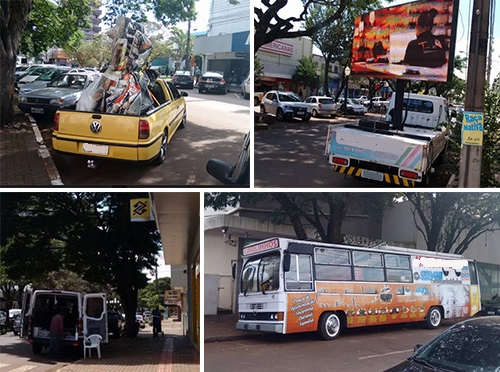 2) O caminhão com painel de publicidade sempre acha vaga na av. Capitão Índio Bandeira e passa o dia com suas propagandas.