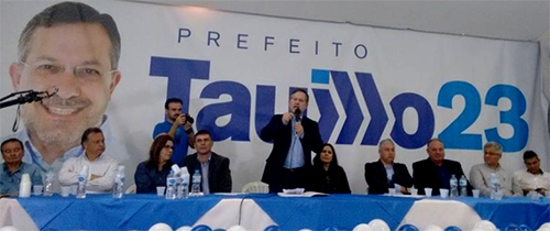Irmão da rival – O primeiro a discursar na convenção de Tauillo Tezelli foi Cezar Bronzel, o irmão da prefeita Regina Dubay (PR). Como presidente do PRP, ele falou em nome dos partidos coligados.