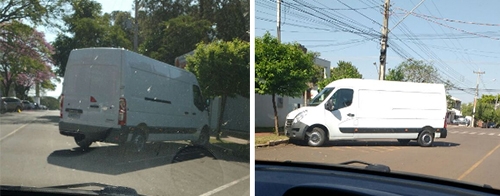 Rua São José, quase esquina com av. Irmãos Pereira, às 14h de segunda-feira. Com o estacionamento em diagonal, a van estaciona e “invade” a pista.