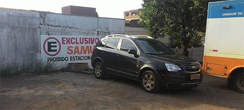 Apesar do enorme aviso pintado no muro, motoristas continuam estacionando no pátio da base do Samu de Campo Mourão. Isso muitas vezes atrapalha a saída dos veículos de atendimento.