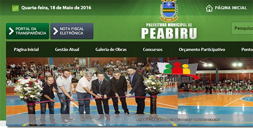 No caso de Peabiru, cita uma foto fixa no portal, em que o prefeito Claudinei Minchio aparece inaugurando uma obra.
