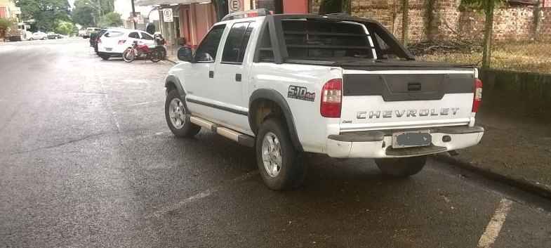 Na rua Harrison José Borges, centro de Campo Mourão, camioneta ignora o sistema de estacionamento e diagonal. Foto: Rafael Silvestrin
