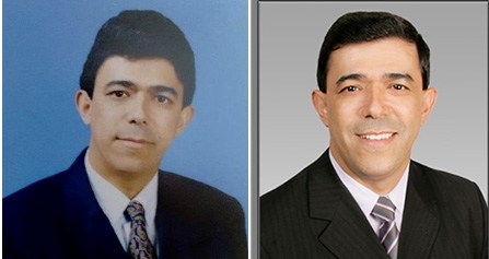 O vereador Sidnei Jardim em dois momentos diferentes nas fotos oficiais da Câmara de Campo Mourão. O primeiro, à esquerda, no quadro em que ele assumiu seu primeiro mandato, em 1997. No segundo, à direita, no quadro do quinto mandato (atual legislatura), iniciado em 2013.
