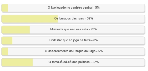 Em terceiro, coladinho, apareceu “Motorista que não usa seta”, com 20%.