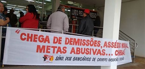 Teve protesto na manhã desta quarta-feira em frente à agência do banco Itaú de Campo Mourão. Foi do Sindicato dos Bancários. A agência só seria liberada para abrir as portas depois do meio-dia. O protesto é contra demissões, assédio moral e metas abusivas.