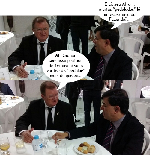 Os cliques são da semana passada, quando o secretário da Fazenda, Altair Casarim, e o vereador Sidnei Jardim dividiram a mesma mesa após a sessão solene da Câmara que entregou o título de Cidadão Honorário ao cartorário Joaquim Viana Pereira Filho.
