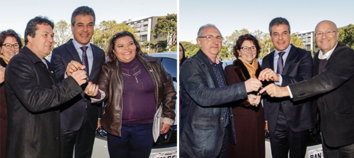 O governador Beto Richa entregou esta semana 21 novos veículos para os núcleos regionais de educação. São as primeiras unidades de um lote de 32 carros que serão repassados aos NREs, de todas as regiões. Os chefes dos núcleos de Campo Mourão, Rosimeire Decaires, e de Goioerê, Adão Aristeu Ceniz, foram lá pegar as chaves com o governador. Cada Renault Sandero custou R$ 32,4 mil.