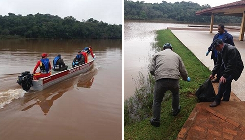 Que mau tempo, que nada! Teve limpeza neste fim de semana no Parque do Lago. A iniciativa foi da Sanepar, para comemorar o Dia Mundial do Meio Ambiente (5 de junho). Voluntários de várias entidades e instituições participaram, como o Tiro de Guerra. O grupo recolheu lixo das margens do lago, do estacionamento interno e da pista de caminhada. Até um barco do Corpo de Bombeiros foi utilizado.