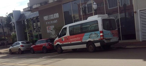 Van da prefeitura de Janiópolis estaciona em frente à Câmara de Campo Mourão. Detalhe: na vaga para idosos. O flagra é desta quinta-feira.