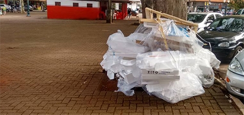 Tem lixo na sua loja e não sabe o que fazer com ele? Coloque na calçada da praça São José. Assim, seu estabelecimento não fica feio. Jogada de gênio, não é?