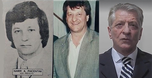 À esquerda, Namir Piacentini como vice-prefeito de Campo Mourão, de 1977 a 1983 (o prefeito era Augustinho Vecchi). Ao centro como deputado estadual, entre o final dos anos 80 e início dos anos 90. À direita, nos dias atuais, como empresário que mora em Curitiba.