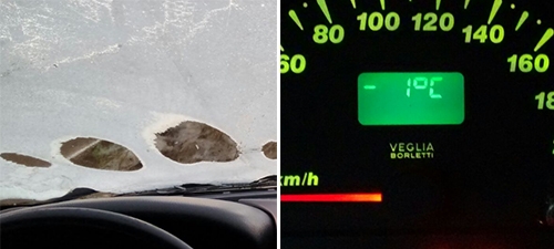 “Às 7h deste domingo, no jardim Botânico, em Campo Mourão, termômetro do carro marcava -1ºC”.