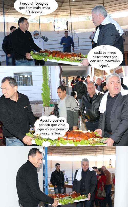 Os cliques são deste domingo, em Mamborê, onde foi realizada a 13ª Festa da Leitoa Mateira. Mais de três mil pessoal saborearam o prato típico. O prefeito Nei Calori e o secretário de Estado Douglas Fabrício (Esporte e Turismo) ajudaram a carregar as leitoas. Os prefeitos Mauro Slongo (Luiziana), Bento Batista (Mamborê) e Baco Duarte (Ubiratã) também estiveram por lá.