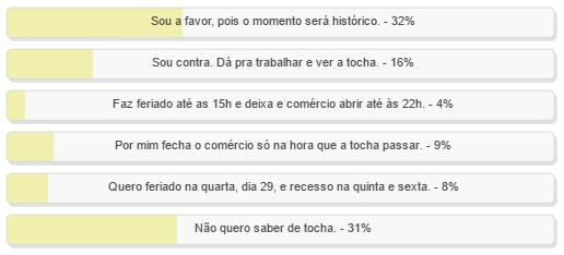 “Você é a favor ou contra a decretação de feriado no dia 29 de junho, quando a tocha olímpica passar por Campo Mourão?”