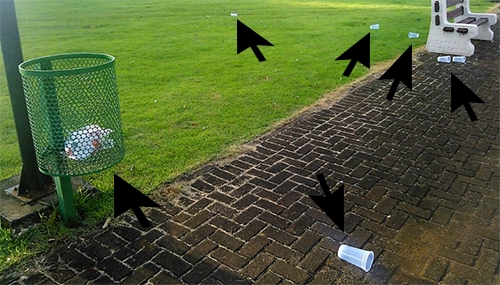 Se a lixeira soubesse andar... (Praça Eleutério Galdino de Andrade, no centro Peabiru). Arleto Rocha