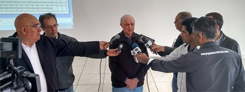 José Carlos Laurani, presidente da Santa Casa de Campo Mourão, numa referência ao presidente da Cãmara do Deputados, Eduardo Cunha, ao brincar com o grande número de microfones na hora de conceder entrevista coletiva; nesta terça-feira, após apresentar o balanço de 2015 da instituição.